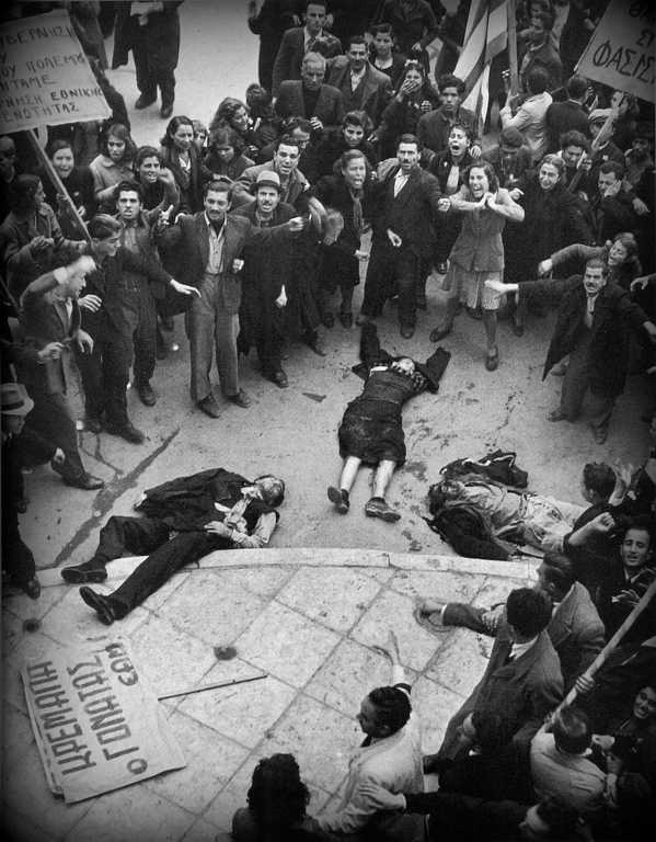 Το ΕΑΜ πραγματοποίησε στις 3 του Δεκέμβρη 1944 στην πλατεία Συντάγματος, το απαγορευμένο από την κυβέρνηση συλλαλητήριο. Η κτηνώδης επέμβαση της Βρετανίας στην ειρηνική διαδήλωση των ελεύθερων πολιτών ήταν χωρίς προειδοποίηση. Η αστυνομία του δωσίλογου Άγγελου Έβερτ (10/4/1894 – 30/12/1970) άνοιξε δολοφονικό πυρ ενάντια στους διαδηλωτές με πολυβόλα, πυροβόλα, ολμοβόλα και ελαφρά όπλα αντιτάνκ. Η σφαγή ήταν σχεδιασμένη!