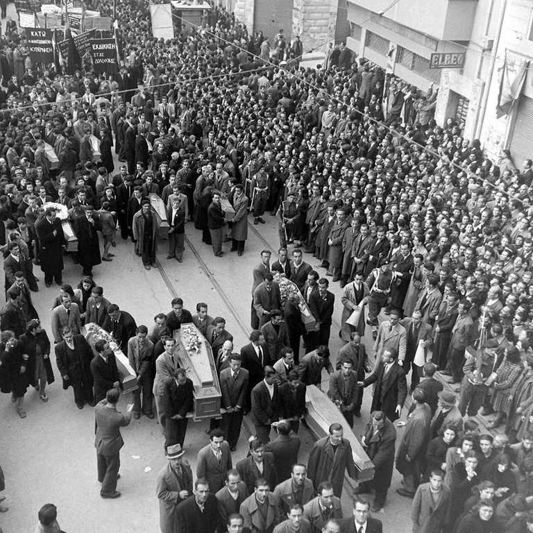 Το άγριο και κτηνώδες πυροβολητό σταμάτησε. Οι πρώτοι νεκροί και τραυματίες του Δεκέμβρη ήταν γεγονός. 21 νεκροί κείτονταν στους δρόμους. Πάνω από 140 τραυματισμένοι. Τα περισσότερα από τα θύματα ήταν αγόρια και κορίτσια κάτω των 20 χρόνων. Απεργίες ξέσπασαν παντού την επομένη της σφαγής. Το ΕΑΜ κηρύττει γενική απεργία. Τα τανκς του Σκόμπιεγκαθιστούν το δοσιλογισμό. Στις 4 Δεκέμβρη, μόλις ο λαός κήδεψε τους νεκρούς του, ακολούθησε νέα σφαγή, με 40 νεκρούς και 70 τραυματίες. Και στις 5 Δεκέμβρη ήρθε ο επόμενος απολογισμός, με 30 νεκρούς ΕΑΜίτες και περισσότερους από 100 τραυματίες. Οι Βρετανοί ιμπεριαλιστές επιτίθενται με τα τανκς στα γραφεία του ΕΑΜ στην Κοραή. Γυναίκες και παιδιά βάδιζαν στους δρόμους με πλακάτ: «Ψωμί για το Λαό». Η ντόπια και η ξένη αντίδραση προκαλούν τον εμφύλιο πόλεμο. Ο νέος ένοπλος αγώνας είχε αρχίσει.