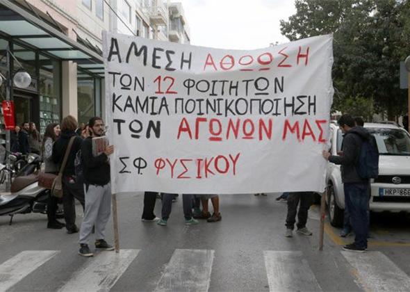 Οι διώξεις με τις κατηγορίες της παράνομης κατακράτησης και απόπειρας παράνομης βίας είχαν ασκηθεί μετά τη δυναμική παράσταση διαμαρτυρίας 400 φοιτητών στη συνέλευση του τμήματος στις 11 Οκτωβρίου 2011.