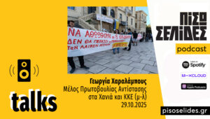 Η Γεωργία Χαραλάμπους, μέλος της Πρωτοβουλίας Αντίστασης στα Χανιά και του ΚΚΕ (Μ-Λ), μιλά για τη δίκη οκτώ πολιτών οι οποίοι συμμετείχαν σε συγκέντρωση που